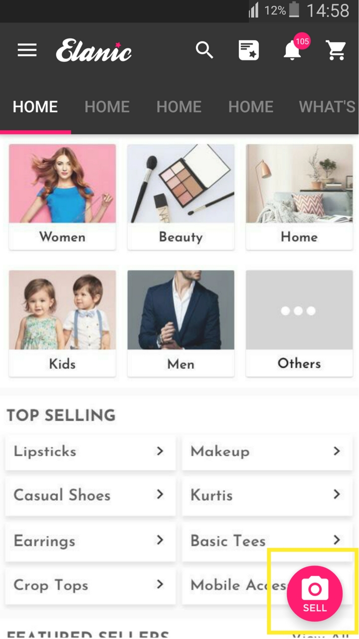 1. Click on the "Sell" button to list your items on Elanic. 2. You can now either take a picture of the product or upload the picture from your phone's gallery. You can also upload multiple pictures of the same item and click on the "Red" button to ...