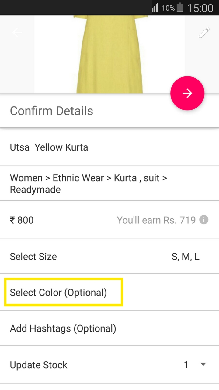 - Fill in the details for colour and hashtags (they are optional) but adding these details can increase the chances of your product visibility.