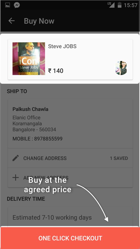 Once the Seller accepts the offer you will get a notification on your phone. You can buy the product at the agreed price from within the chat by tapping on "Buy Now"